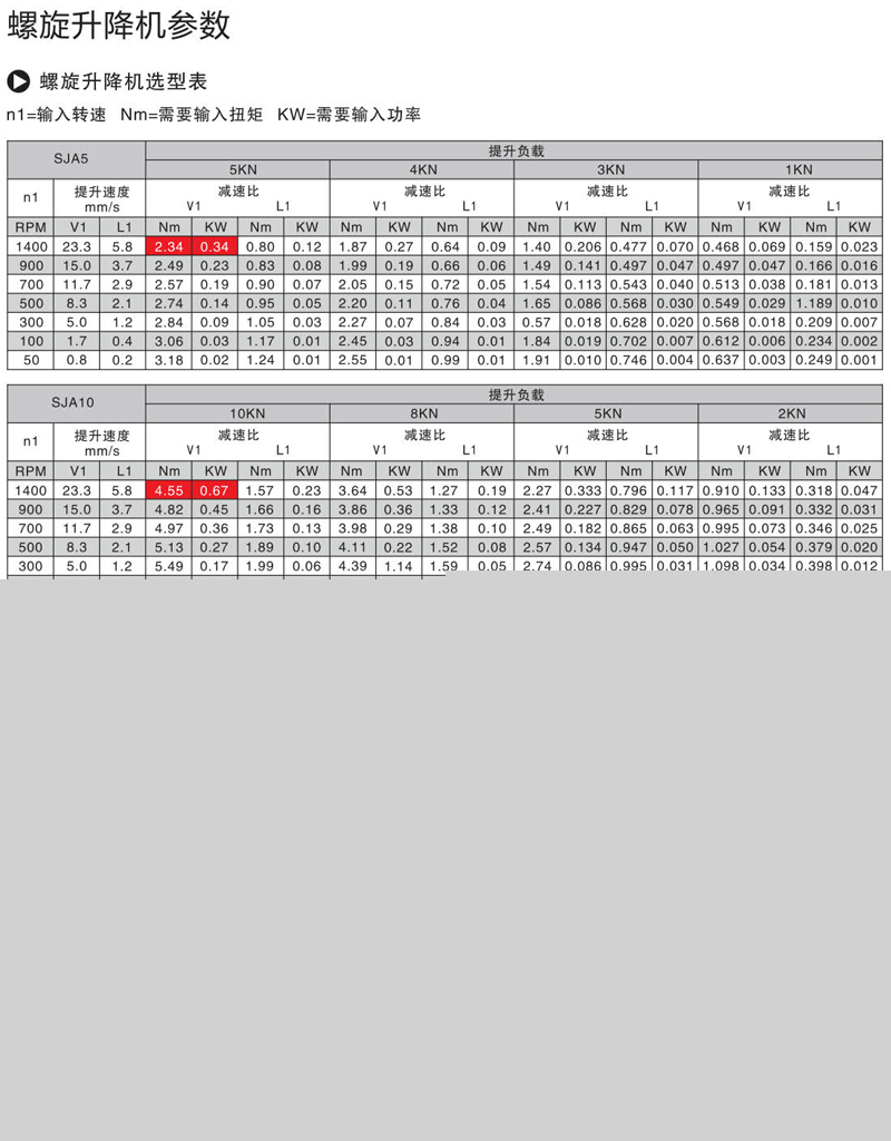 螺旋升降機(jī)正常工作狀態(tài)下的輸入功率不能超過最大輸入功率,輸入功率kw=(滿載扭矩Nm x負(fù)載率x輸入轉(zhuǎn)速rpm )/ 9550m,