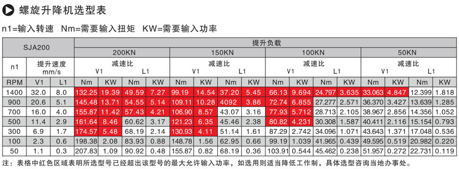螺旋升降機正常工作狀態下的輸入功率不能超過最大輸入功率,輸入功率kw=(滿載扭矩Nm x負載率x輸入轉速rpm )/ 9550m,